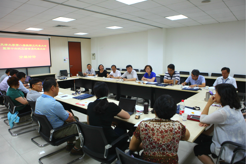 本站讯(文并图 赵习钧)6月3日至6日,天津大学隆重举行了第八届教职工代表大会暨第十六次工会会员代表大会。6日上午,来自30个学院、机关各部处与直属单位组成的14个代表团参与了分组讨论。各个代表团在会议上讨论并审议了《天津大学事业发展“十三五”规划》、《工会、教代会工作报告》、《大会决议》(草稿)、《工会委员会、教代会执行委员会及各专门委员会候选人名单》。代表们在讨论会上各抒己见,真诚地为学校发展提出意见和建议。