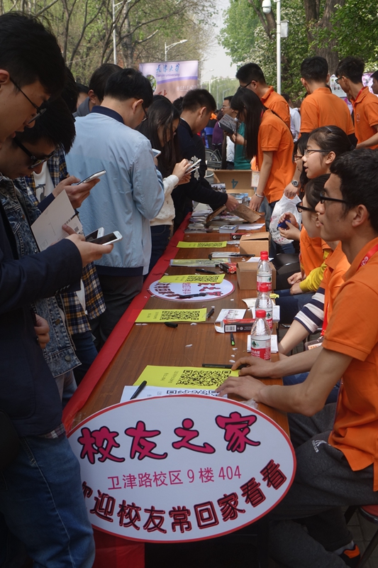 本站讯 (学生记者 张一凡)4月9日,天津大学第五届海棠季在明媚的阳光和微微春风中拉开帷幕。为了欢迎广大校友重返母校看海棠,学校在铭德道第四教学楼104房间设置了“海棠花季”校友专享空间。在空间内,校友会为广大回校的校友们设置了座椅和茶点,供休憩交流,并为校友们提供了书写和寄送海棠季明信片的服务。
