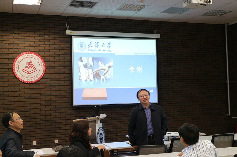 在讲授结束后,党委书记王世斌、院长闫广芬、副书记刘东海、教授祝士明、副院长朱健、副教授王梅、副教授朱红春等教师党员结合人才引进、绩效考核等实际工作发表了自己的观点。王世斌再次强调“两学一做”的要求,希望全体教职工党员和学生党员更加积极地参与教育学院党委组织的各项活动。