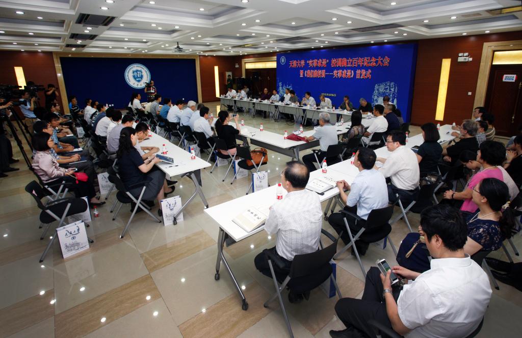本站讯(记者 闻雪昆 摄影 王建泽) 2015年6月6日,天津大学“实事求是”校训确立百年纪念大会暨《我们的校训——实事求是》一书首发式在天津大学举行。同期,“实事求是”名家书法作品展在天津大学王学仲艺术研究所开展。