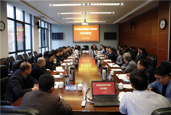 本站讯(记者 赵习钧 摄影 唐蒙)2018年12月3日,天津大学校长钟登华在卫津路校区会议楼第一会议室会见宕昌县县委书记李平生一行,并就天津大学定点帮扶宕昌县工作举行座谈。这是继今年7月和10月底,天津大学党委书记李家俊和校长钟登华先后率团赴宕昌考察座谈,推进定点扶贫工作后,时隔近一月,双方再次就全面深入推进相关工作进行会谈。天津大学党委常委、组织部部长、统战部部长赵美蓉主持座谈会。