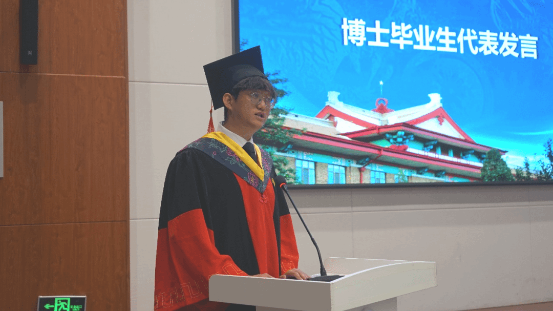 博士毕业生代表、21级智能医学工程专业王韬从学术视角,畅谈了对医学前沿领域的理解与探索,表达了勇攀科学高峰、服务国家重大战略需求的决心。