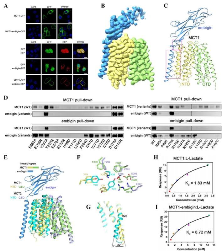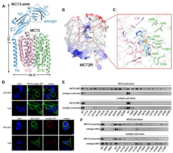 图3. MCT2-embigin 的结构与功能研究
