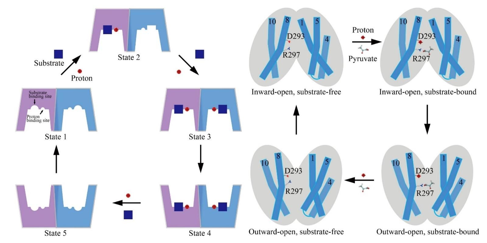 图1. MCT2的底物转运模型[2]