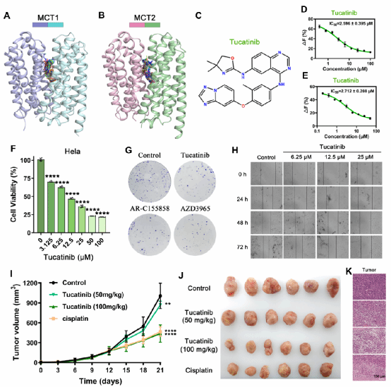 图4. Tucatinib通过靶向MCT1/2抑制宫颈癌发生发展