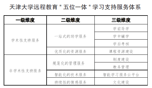 学院尽量满足在职人员多样化、个性化的教育需求,充分考虑在职学习者的基本特征和学习特点,把对学习者持续关注和全面服务作为第一要义,将分散单一的服务相融合,构建出涵盖助学、资源、管理、技术、情感“五位一体”的远程教育学习支持服务体系。