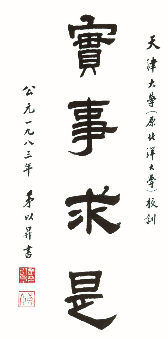 而对北洋大学(天津大学)的人来说,“实事求是”则有着更加深刻的理解,更接近其本义,同刘德一样,为了不断地“求”其“是”,而努力地“实”其“事”。这里的“是”,就是“兴学强国”。