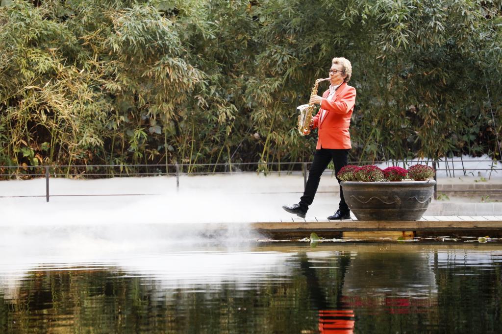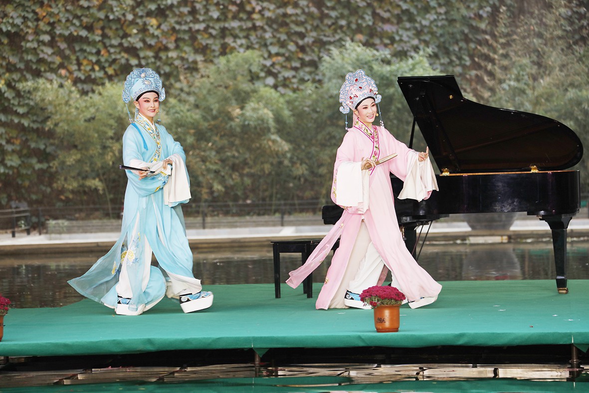 评弹表演艺术家盛小云也从苏州赶来,一曲《枫桥夜泊》恰与现场的红叶、碧水相映照。赵普这次不以主持人的身份登台,而是一展他在古诗文方面的修养,解读并朗诵苏轼的《水调歌头·明月几时有》。指挥家、钢琴表演艺术家滕矢初,则用一首改编自古曲《春江花月夜》的钢琴独奏《夕阳箫鼓》,让全场沉醉在音乐、诗意与大自然的美相互交融的艺术境界中。