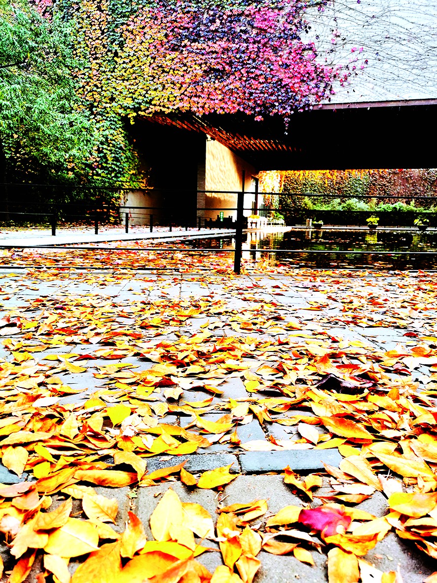天津大学春有海棠、秋有红叶,最美的红叶就在冯骥才文学艺术研究院。每到深秋,满墙青藤转为灼灼红色。秋风吹落,片片红叶飘荡在澄心池上,红叶、碧水与斑斓的锦鲤相映成辉。人在此境,如置身画中,怎能不油然而生诗意?于是,天大师生纷纷来此捡拾红叶,流连欣赏,用纸短情长的诗歌抒发内心的情怀,用手机或相机凝固自己眼中诗意瞬间。