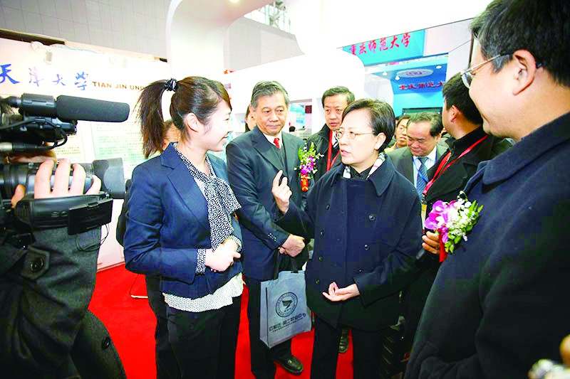 时任教育部副部长鲁昕(中)参观天津大学职教师资基地展区