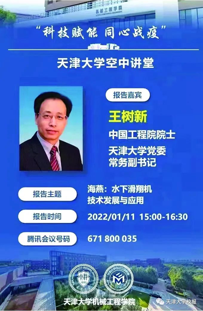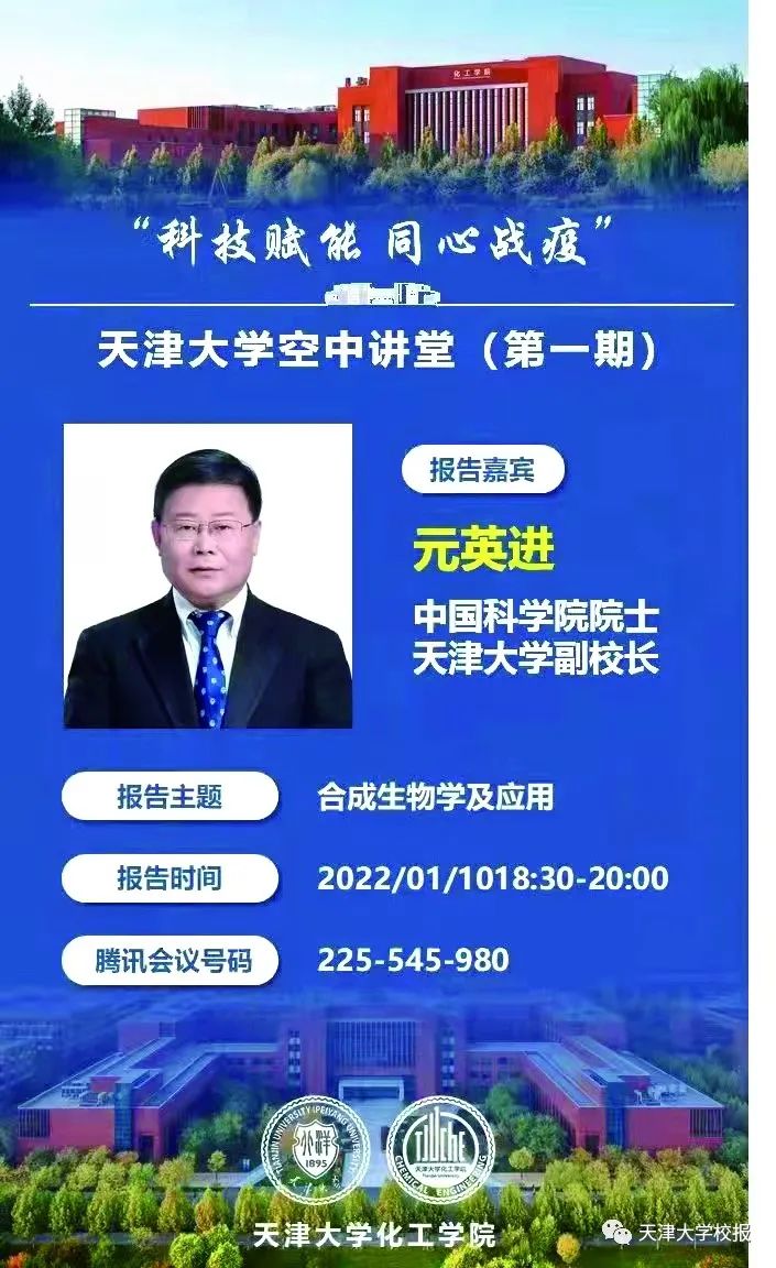 我校于疫情爆发第一时间组织知名教师开设了100场“科技赋能·同心战疫”空中课堂,号召广大教师不仅要讲好学术前沿知识,更要讲好抗疫思政课。1月10日,首场“科技赋能 同心战疫”空中课堂在线开讲。中国科学院院士、我校副校长元英进从专业角度对“合成生物学及应用”进行了解读。校党委书记杨贤金与1400余名师生一起云端“听讲”。11日,中国工程院院士、校党委常务副书记王树新以《海燕:水下滑翔机技术发展与应用》为题,介绍了“海燕”的研究背景与重要意义、发展方向和主要进展等。