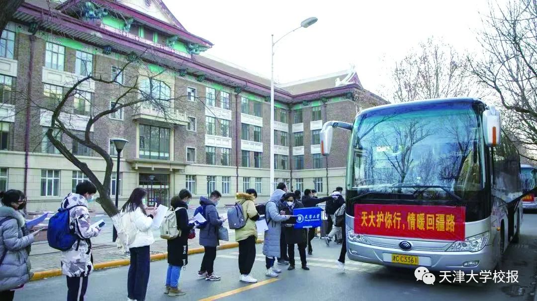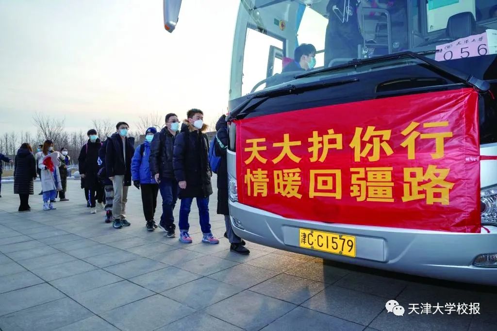 本报讯 (记者 赵晖 摄影刘延俊 陈晓金)“回家了!晚上我能躺在家里的床上睡觉了!”1月26日,天津大学卫津路、北洋园校区的寒假送站发车点到处洋溢着回家的急切与幸福,学校安排教师带队,护送本硕博、多地区、多民族的160名学生包机返回新疆。护送你平安回家是天大的事!青春作伴“笑还乡”,天大学子挥手与老师和学校作别,相伴回家的路是稳稳的幸福。