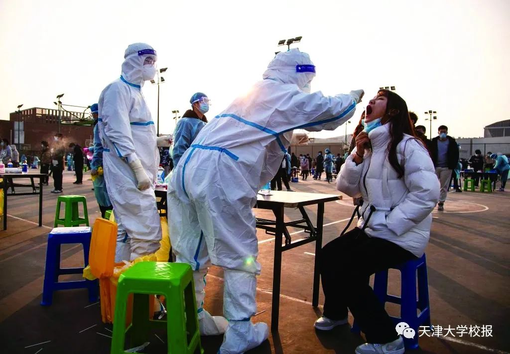 “我报名!”“我也报名!”“算我一个!”1月8日,天津市突发奥密克戎新冠肺炎疫情,随即全市启动全员核酸检测。天大需要立即组织两大校区3万余人进行核酸检测。一声令下,大批师生志愿者立即响应,踊跃报名。校园抗疫战场成了立德树人的“思政大课堂”,许多年轻人穿好“白色铠甲”防护服投入到战疫中。