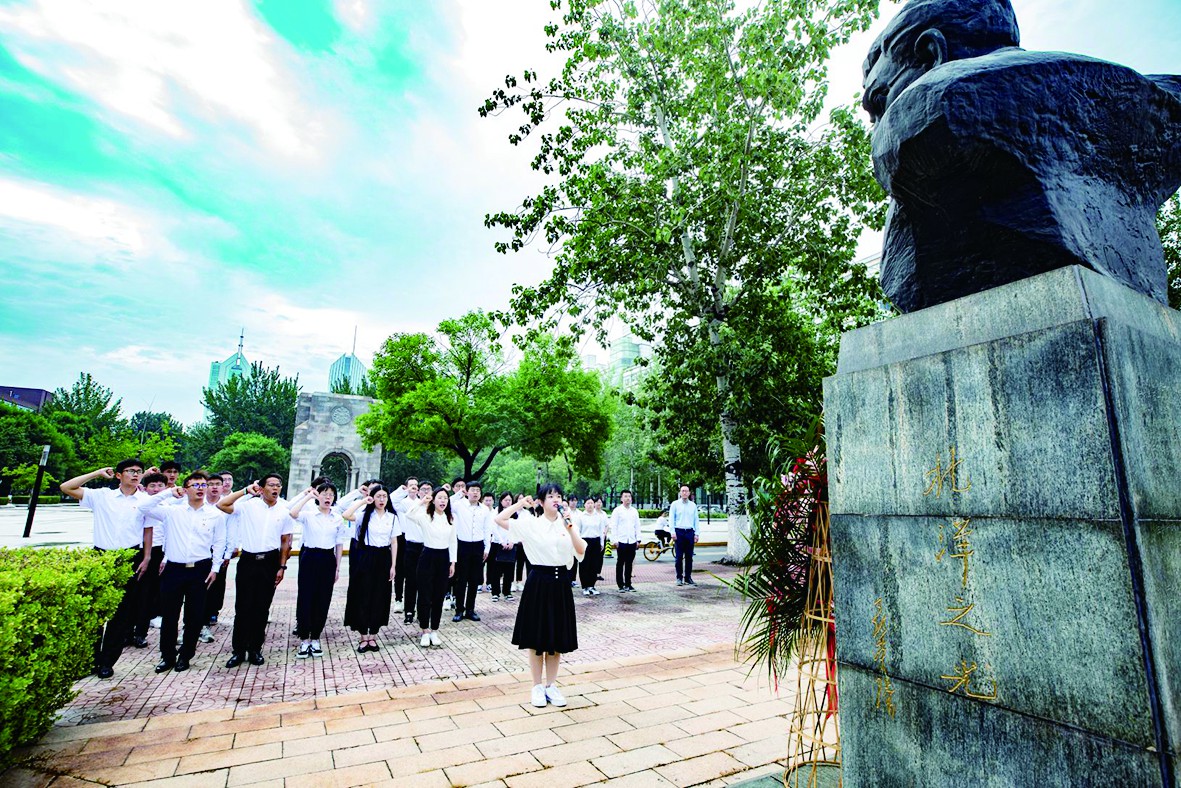 青年学子向太雷像献花宣誓
