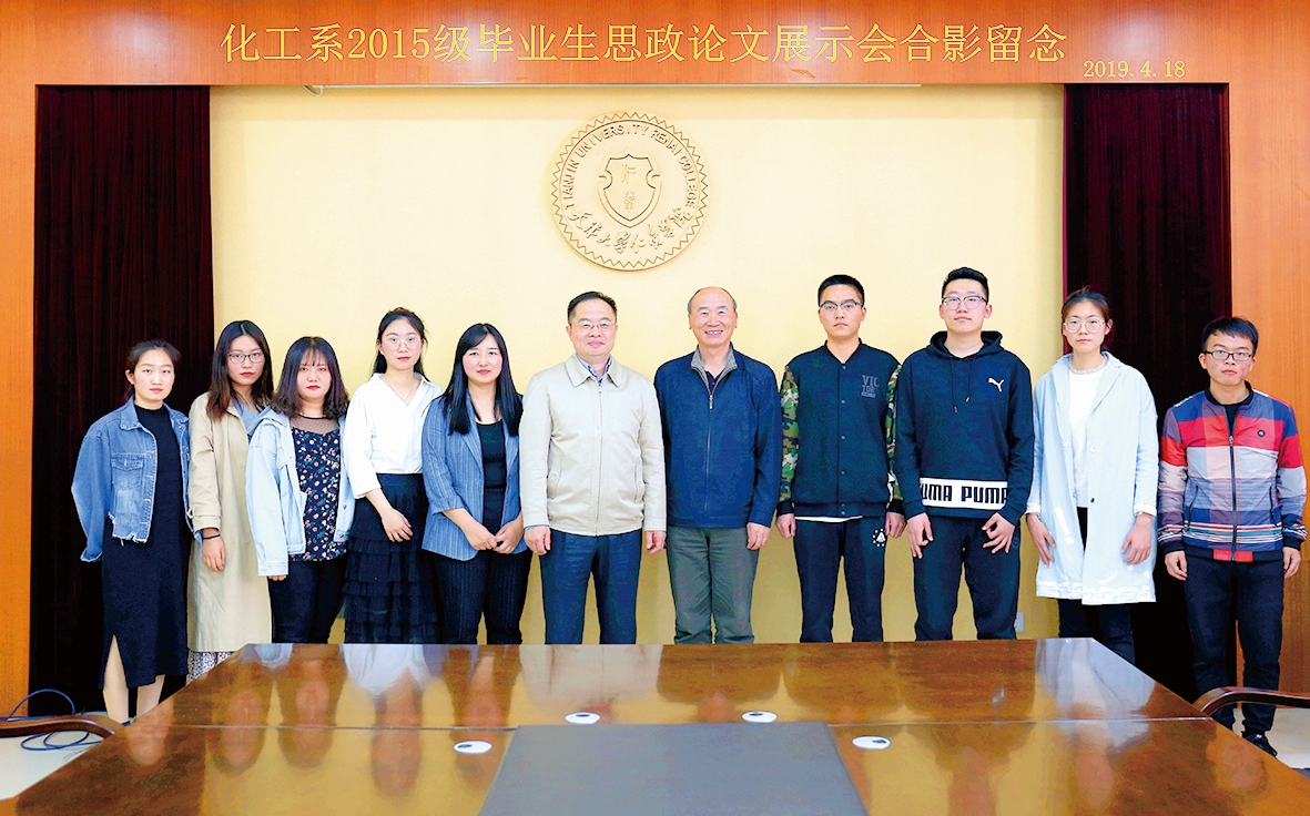 以德立身、以德立学、以德施教,增强课程的思想性、理论性、亲和力和针对性,撰写 “思政论文”举措显成效。化工系在毕业年级试行毕业生撰写“思政论文”的举措,以达到提高毕业生思政水平、提高政治站位的目的,该项工作已连续开展了2年。2019年,化工系在上一年试行的基础上,又做了部分方案的调整,一方面把撰写“思政论文”工作提前启动,给毕业生的毕业设计腾出充足时间;另一方面把“思政论文”指导教师的范围扩大到全体教师和本系党政领导,切实实现了三全育人。学生通过撰写“思政论文”提高了政治思想方面的认识,增强了政治意识;指导教师通过指导“思政论文”,自身的政治理论水平也得到进一步提升;思政部教师通过参与指导“思政论文”,充分接触了学生思想,了解了学生动态。
