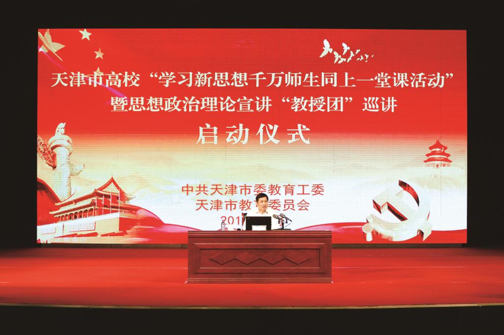 同时,学院组建了我校学生思想政治理论宣讲团,近百位学生参与宣讲;推动学校设立了全校“集中学习活动日”,师生共同集中开展学习。2018年1月5日,以马克思主义学院师生为主要群体的学生思想政治理论宣讲团走进我校对口扶贫的静海区付家村,为当地党员干部和村民进行宣讲。该宣讲以“学习好、宣传好党的十九大报告精神和习近平新时代中国特色社会主义思想”为主线,结合新时代农村发展特点,以学生的视角,分别就“小康社会的建设”“改革开放的全新模式”“文化建设在社会发展中的作用”等问题进行了宣讲。