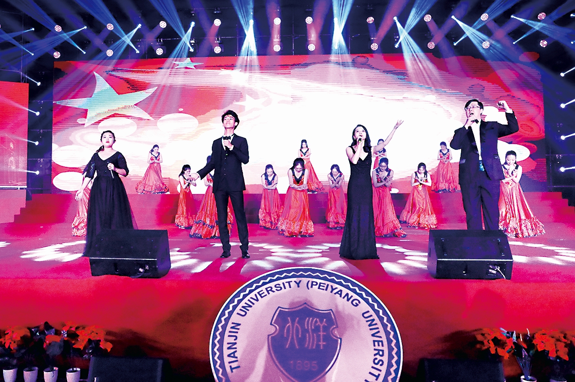 经典歌曲的优美旋律响彻全场,唱出了天大师生庆祝中华人民共和国成立70周年、庆祝天津大学建校124周年、祝福祖国美好未来的时代主旋律和最强音。