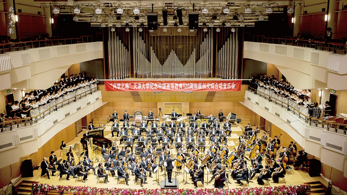 拓宽美育实践平台 学校大力支持北洋艺术团建设,把“建设好北洋艺术团”写进了党代会报告。北洋合唱团在世界享受盛誉。为了扩大艺术普及,学校开设了20多个院级艺术团,每年开展全校合唱节,并坚持22年举办周末音乐会。此外,学校还搭建了高雅艺术进校园、传统艺术进书院、“海棠季”等为特色的实践平台。学校每年各类美育活动达百余场,受益师生5万余人次;同时,帮助贫困地区创作艺术作品、培训音乐教师、组建乐队等。