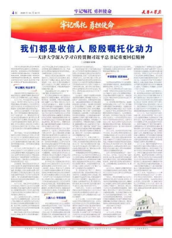 【校报特稿】牢记嘱托 勇担使命 :天津大学深入学习宣传贯彻习近平总书记重要回信精神