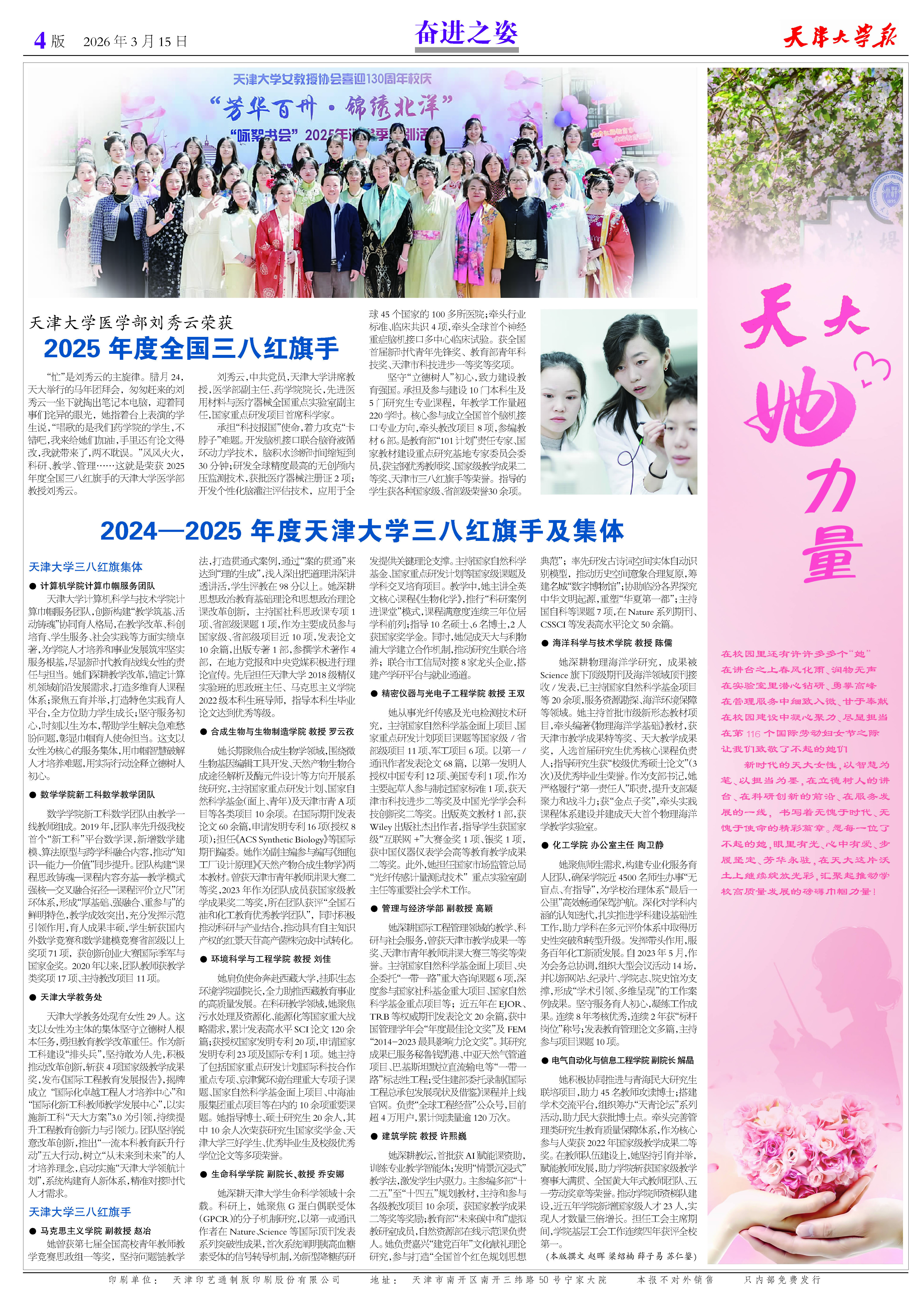 她深耕物理海洋学研究,成果被Science旗下顶级期刊及海洋领域顶刊接收/发表,已主持国家自然科学基金项目等20余项,服务资源勘探、海洋环境保障等领域。她主持首批市级新形态教材项目,牵头编著《物理海洋学基础》教材,获天津市教学成果特等奖、天大教学成果奖,入选首届研究生优秀核心课程负责人;指导研究生获“校级优秀硕士论文”(3次)及优秀毕业生荣誉。作为支部书记,她严格履行“第一责任人”职责,提升支部凝聚力和战斗力;获“金点子奖”,牵头实践课程体系建设并建成天大首个物理海洋学教学实验室。