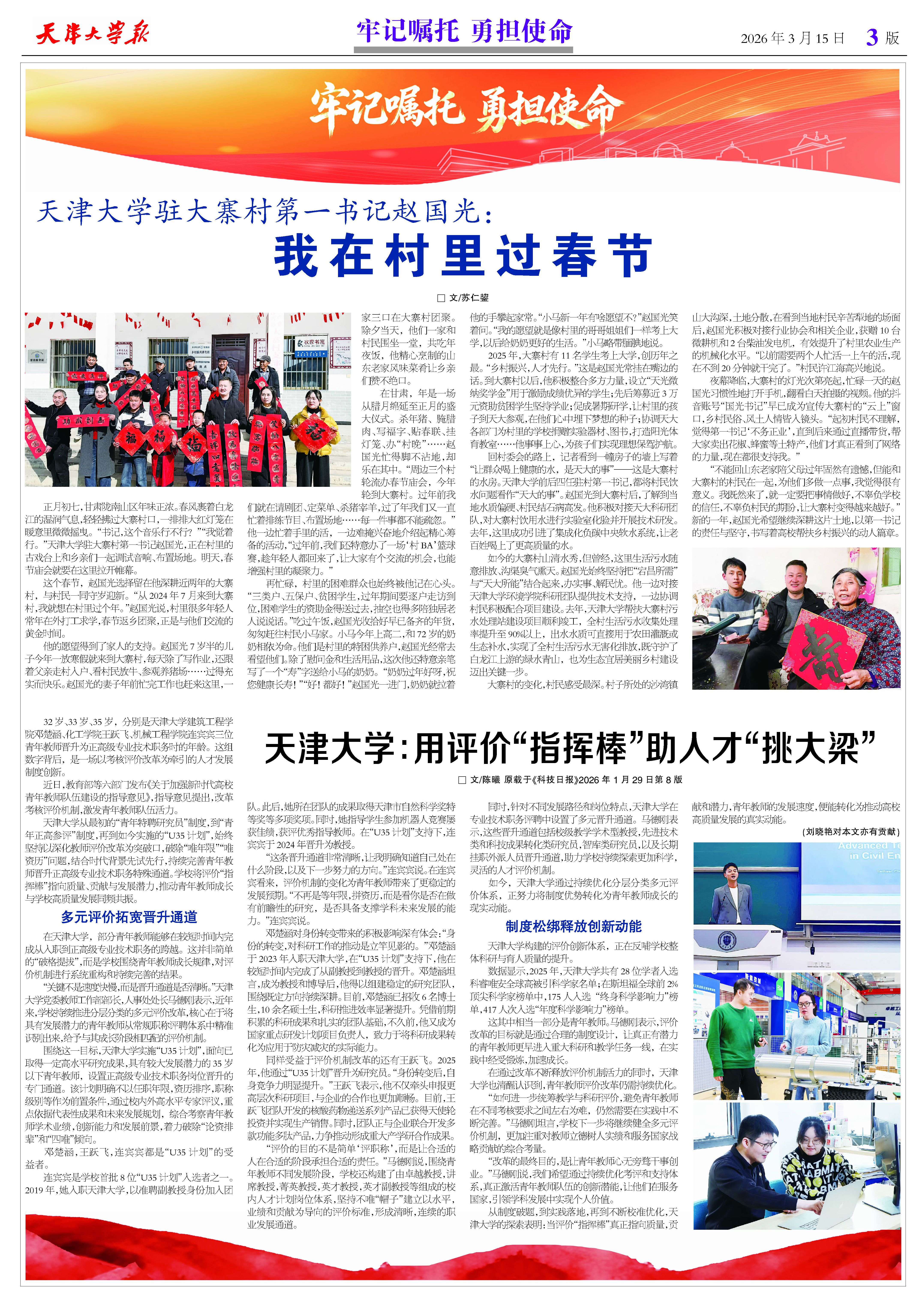 从制度破题,到实践落地,再到不断校准优化,天津大学的探索表明:当评价“指挥棒”真正指向质量,贡献和潜力,青年教师的发展速度,便能转化为推动高校高质量发展的真实动能。
