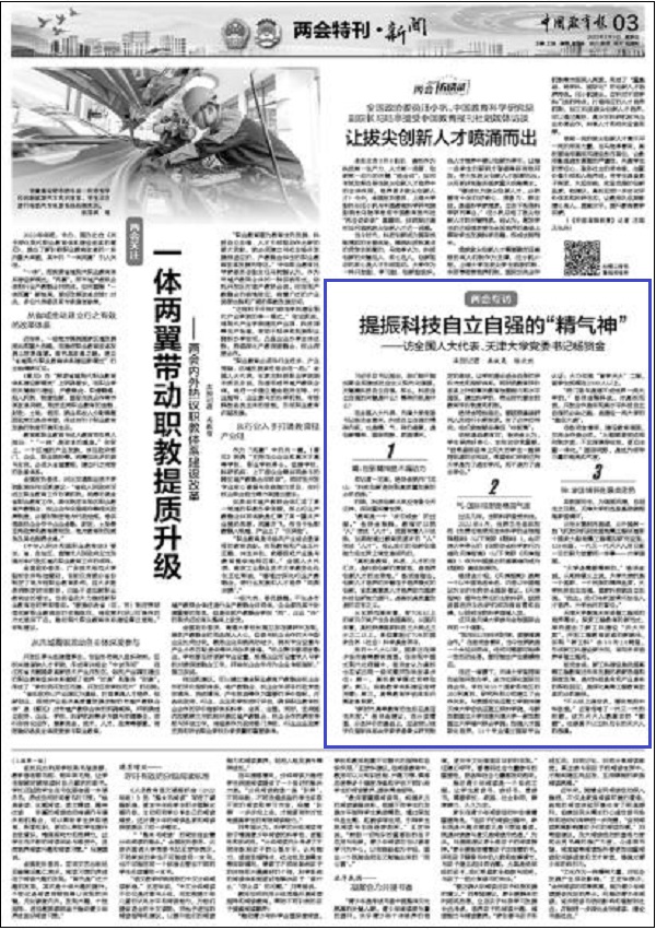 在全国人大代表、天津大学党委书记杨贤金看来,科技自立自强的精神内核,也是精、气、神的凝聚,是创新精神、国际视野、家国情怀。