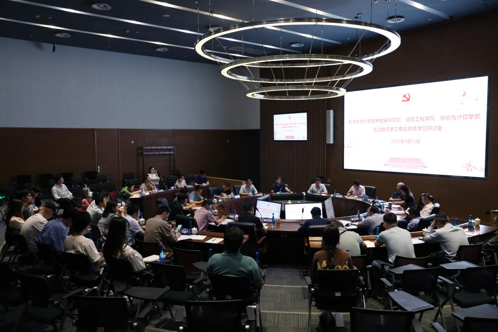 5月15日下午,学部中心组带头与天津大学科学技术发展研究院、建筑工程学院共同开展主题教育第三专题联合学习研讨,天津大学副校长王天友,学校18新利体育备用
