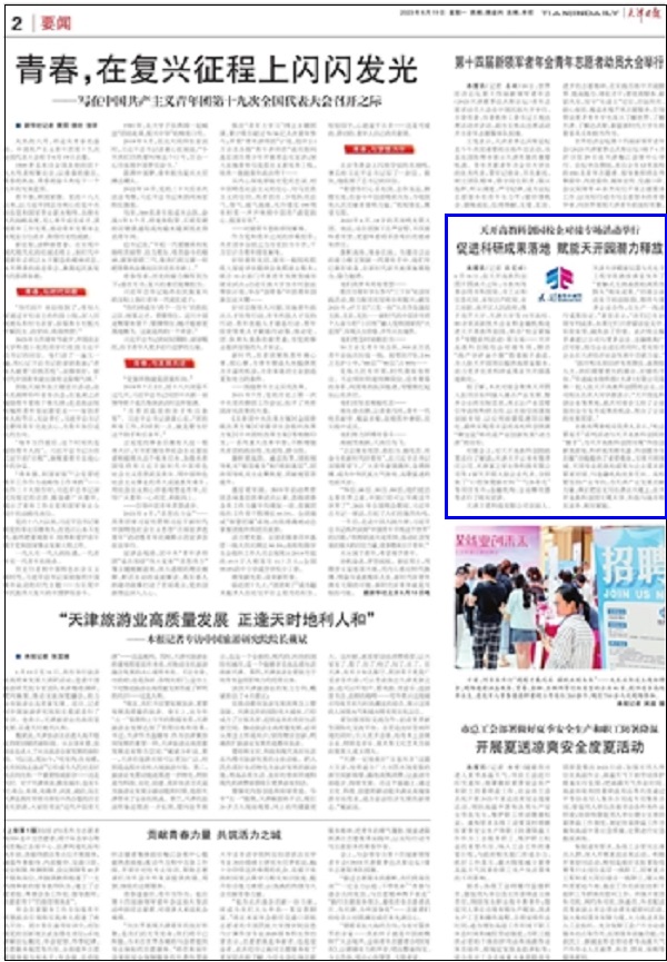 本报讯(记者 张雯婧)6月18日,在天开高教科创园开园满月之际,市教育两委会同市科技局、市工业和信息化局、市知识产权局、市工商联、南开区人民政府,携手南开大学、天津大学等15所高校、80余家高新技术企业和金融机构走进天开高教科创园,举办“校企紧握手”专题系列活动·第五场──天开高教科创园校企对接专场,联合“政产学研金介服”搭建握手通道,为入驻天开园项目提供高质量服务,助力更多优质新利18网址登录