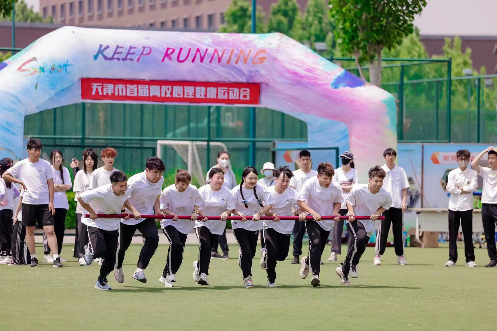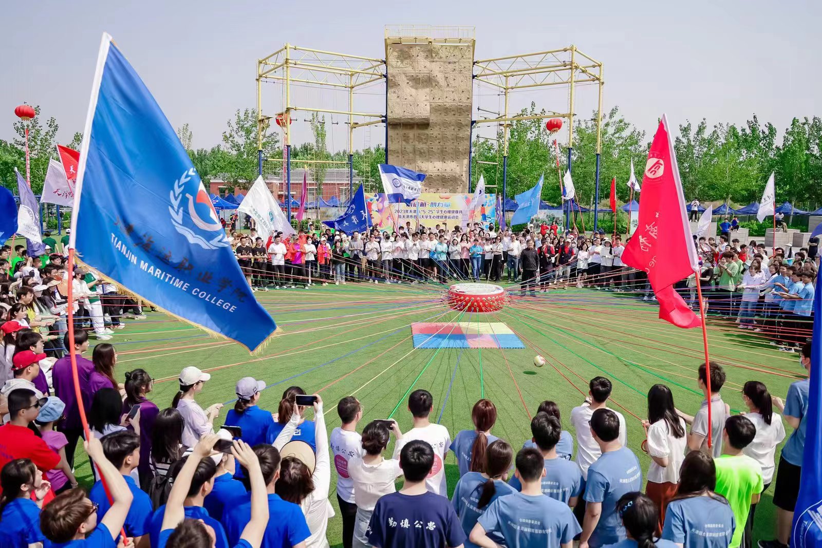 中宏网5月14日电“快乐旋风跑”“袋鼠跳接力”“同心鼓”“毛毛虫”……一项项别开生面的比赛项目让大学生们肆意地挥洒青春、开怀大笑,也让初夏的天津大学校园青春洋溢,朝气蓬勃。5月14日,“心启航·心力量”天津市首届高校心理健康运动会在天津大学北洋园校区心理素质拓展基地举行,这也是2023年天津市“5·25”学生心理健康月的重要活动之一。