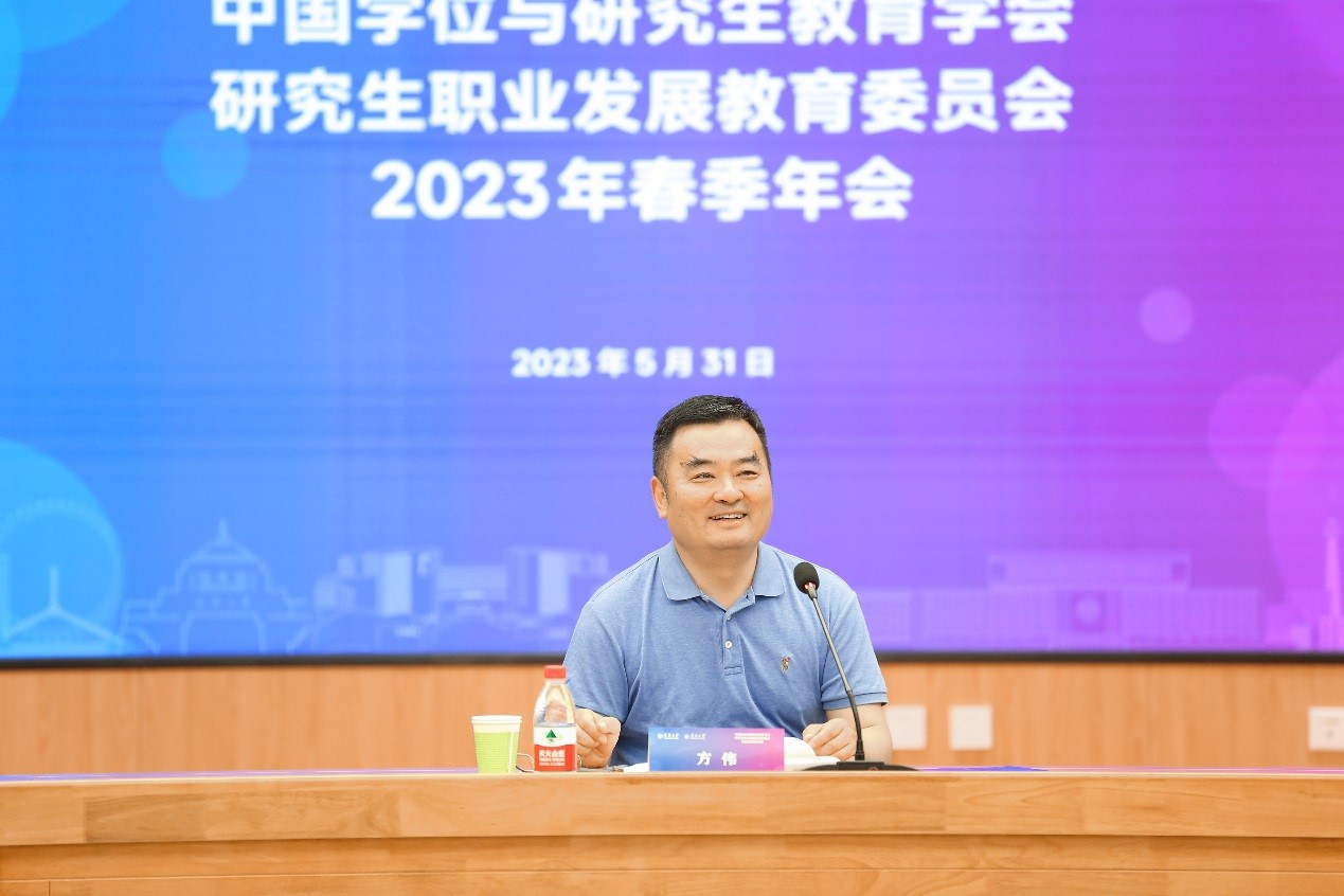 本站讯 5月31日,中国学位与研究生教育学会研究生职业发展教育委员会2023年春季年会在天津大学、南开大学举行。教育部学生服务与素质发展中心副主任方伟、天津市政府教育督导室总督学王秋岩、天津市人力资源和社会保障局二级巡视员张少军、南开大学党委副书记牛文利、天津大学党委副书记韩庆华以及中国学位与研究生教育学会研究生职业发展教育委员会委员单位有关同志参加了会议。会议由天津大学党委学生工作部部长、学生处处长赵欣主持。
