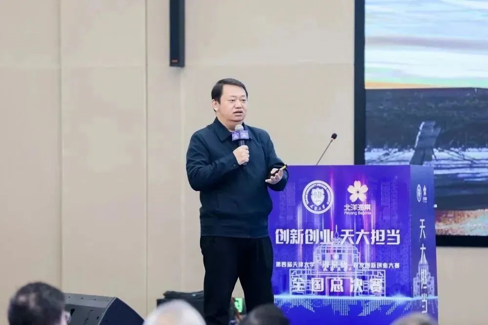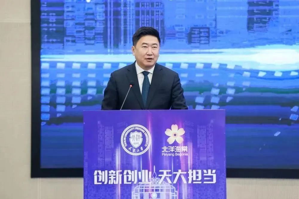 随后,北洋海棠基金发起合伙人、九安医疗董事长刘毅以“为天开高教科技园贡献天大力量”为主题,就本届创赛和天大创新创业生态的目标进行了详细介绍。他表示,未来的竞争是人才的竞争、科技的竞争、创新的竞争、创业的竞争,要通过生态建设让更多青年学子留津干事创业,吸引更多成功的校友企业家回津发展,这是天大创新创业生态一直在思考和努力实现的目标。天开高教科技园要快速发展成功的最关键因素是政府引导、政策配套、市场化运营,配资形成不同阶段的创投基金群,发挥基金在筹集资金、发现项目、培育顼目、招引项目、推动创新、分散风险等方面重大的作用。天大创新创业生态将始终以推动科技成果转化、促进创新创业为核心,为天开高教科技园和天津市的高质量发展贡献力量。