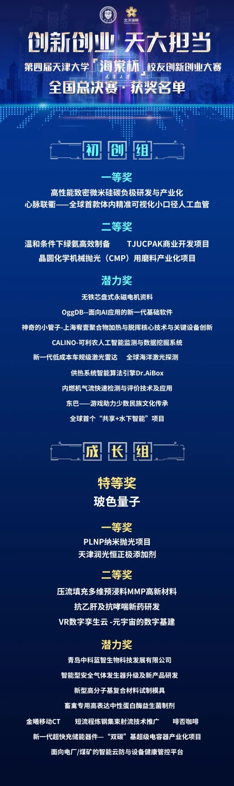 本次大赛由天津大学、天津市科学技术局、天津市人力资源和社会保障局、天津市金融工作局、天津市津南区人民政府、天津市南开区人民政府、天津市青年科技工作者协会指导,天津大学科学技术发展研究院、天津大学合作办公室、天津大学校友总会主办,北洋海棠基金、天津大学科技园、创业知本社承办,兴业银行天津分行特别支持,是一场全方位、多层次、无缝隙支持校友、师生“创新创业”的一年一度全球校友创赛盛事,更是科学家、创业者、企业家与市场、资本沟通的重要“桥梁”。