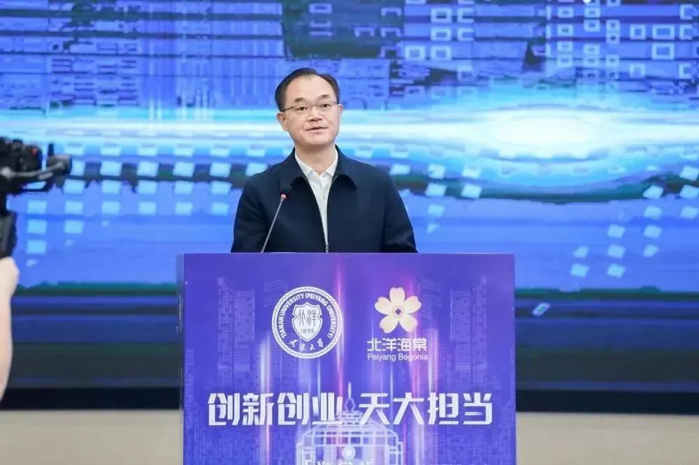 津南区委副书记、区长、区政府党组书记杨灏在致辞中说,天津大学“海棠杯”校友创新创业大赛全面贯彻了党的二十大对科技创新工作提出一系列重要要求,是推动创新创业项目落地转化的生动实验,可以说是一件“天大”的好事。津南区目前已成功入选全国首批21个国家产教融合试点城市,下一步将继续坚决落实市委市政府提出的“科教兴市、人才强市”行动的重要要求,以举办大赛为契机,着力建设高端人才聚集地、产业人才荟萃地、青年人才向往地,也诚挚邀请各位校友老师,带着项目与理想来共同把津南打造成为人才技术的高地和创新创业的策源地。
