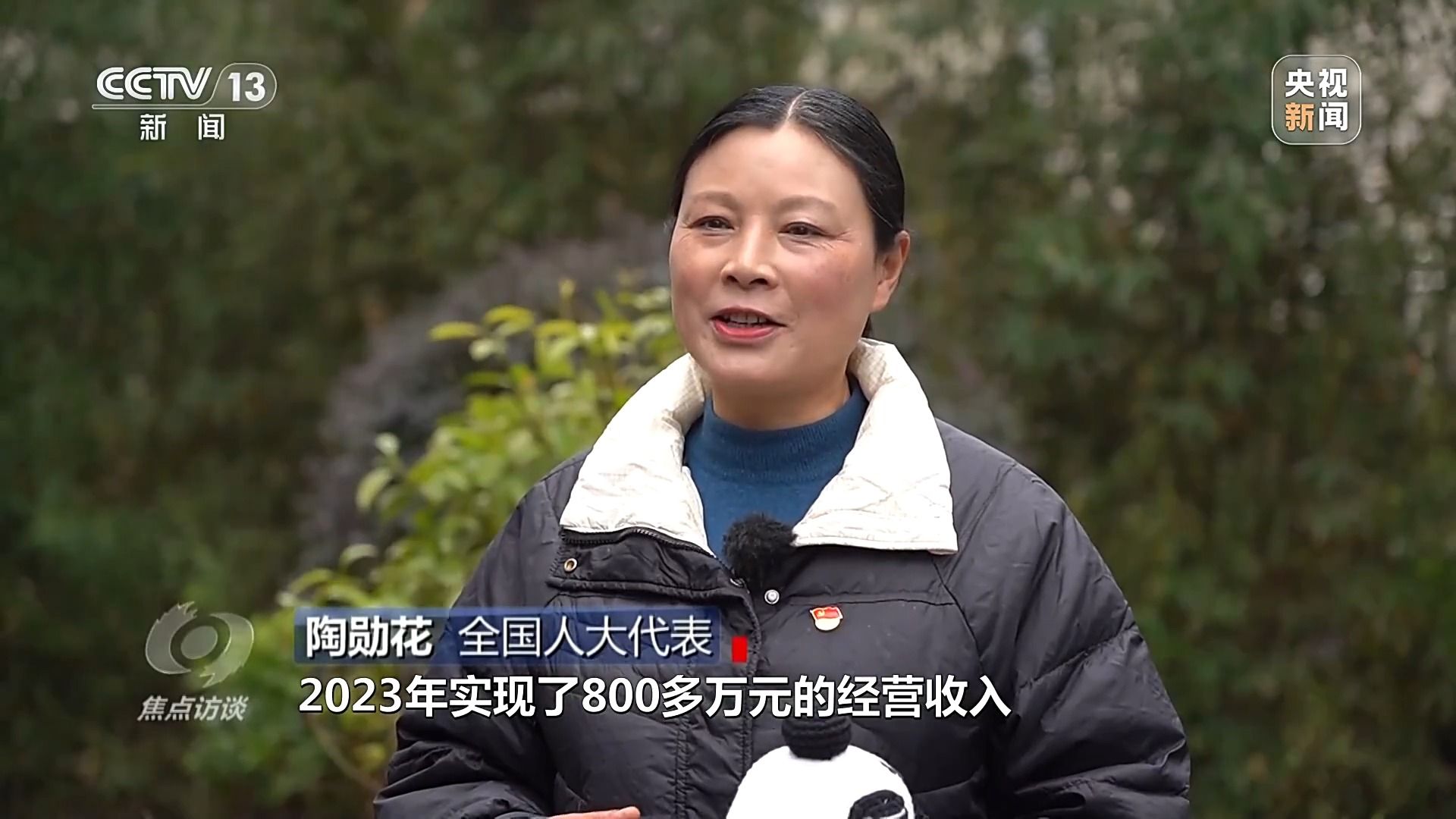 全国人大代表 陶勋花:“整个2023年,我们村上植入了更多业态,比如手工、营地、民宿等,2023年实现了800多万元的经营收入。”