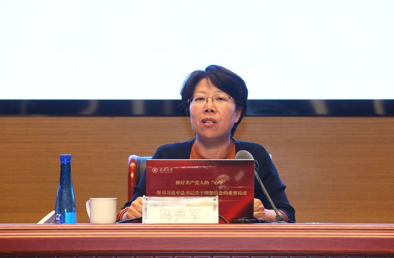 冯秀军教授从理想信念是共产党人“心学”的“制高点”切入,结合马克思主义基本原理、党史以及师生工作中遇到的实际问题和思想困惑,从如何理解党的理想信念、理想信念何以坚定、理想信念如何检验、如何坚定理想信念四个方面,向与会人员系统讲解了习近平总书记关于理想信念的重要论述。报告内涵丰富深刻、语言生动平实,对于深刻理解理想信念的内涵与实践要求有着重要的理论启示意义和现实指导作用。