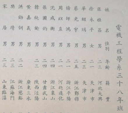电机工程系学生名录