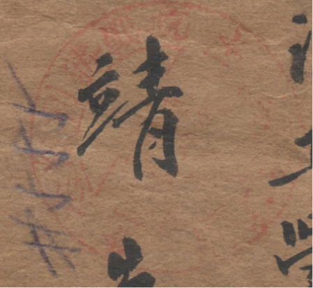 幸运的是,一枚泰顺纪念抗战胜利的信封,一直保存到了今天。这是一封寄给泰顺百丈口北洋工学院樊靖先生的快件挂号信,特别珍贵的是,信封上加盖有“抗战胜利纪念”邮戳。信封的落地戳为三格式全中文点线戳,上格印有“浙江”字样,下格为“百丈口”,中格为日期“九月四日”,中间另有间隔线。