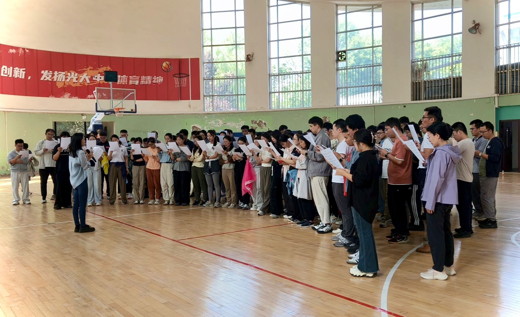 素拓破冰促相识。24日一早,天津大学卫津路校区篮球馆笑声连连、气氛活跃。为推动参训学员了解天大、结交友谊,场馆中心吴琼老师精心设计了本次“巍巍学府、薪火传承”校史主题破冰素拓活动,包含“启心动念热身”“校史足迹追踪”“天大品格铸魂”“天大校歌浸润”四个环节。教师培训中心主任潘海生在动员讲话中表示,本次培训活动是学校为新入职教师搭建的学习交流平台,希望大家在培训过程中既要“学课程”“强能力”,更要“交朋友”“促合作”,努力成长为堪当民族复兴重任、服务教育强国建设、推进学校稳步迈向世界一流大学前列的新时代高素质专业化教师。