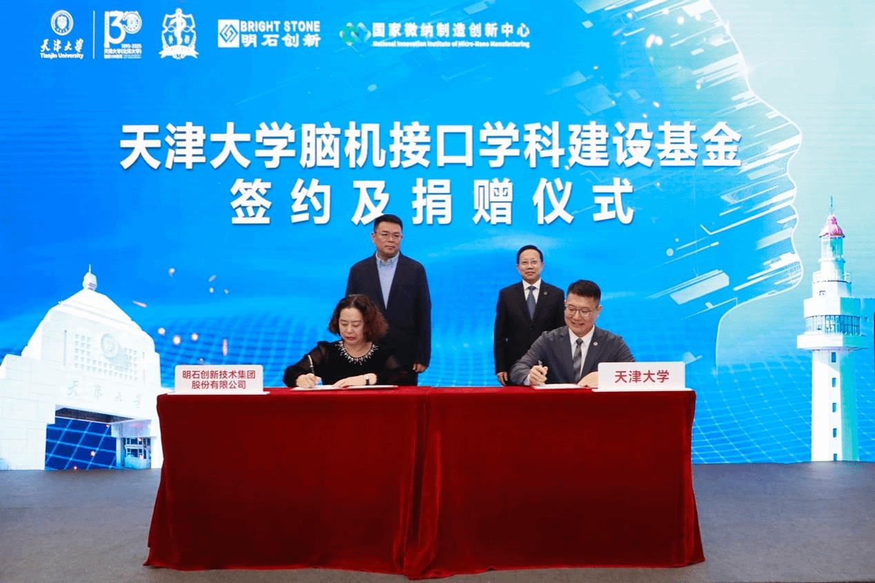 9月29日下午,在天津大学喜迎建校130周年之际,天津大学校友伉俪——国家微纳制造创新中心董事长高峰,明石创新技术集团董事、总经理唐焕新重返母校,捐赠1.3亿元人民币,设立“天津大学脑机接口学科建设基金”。