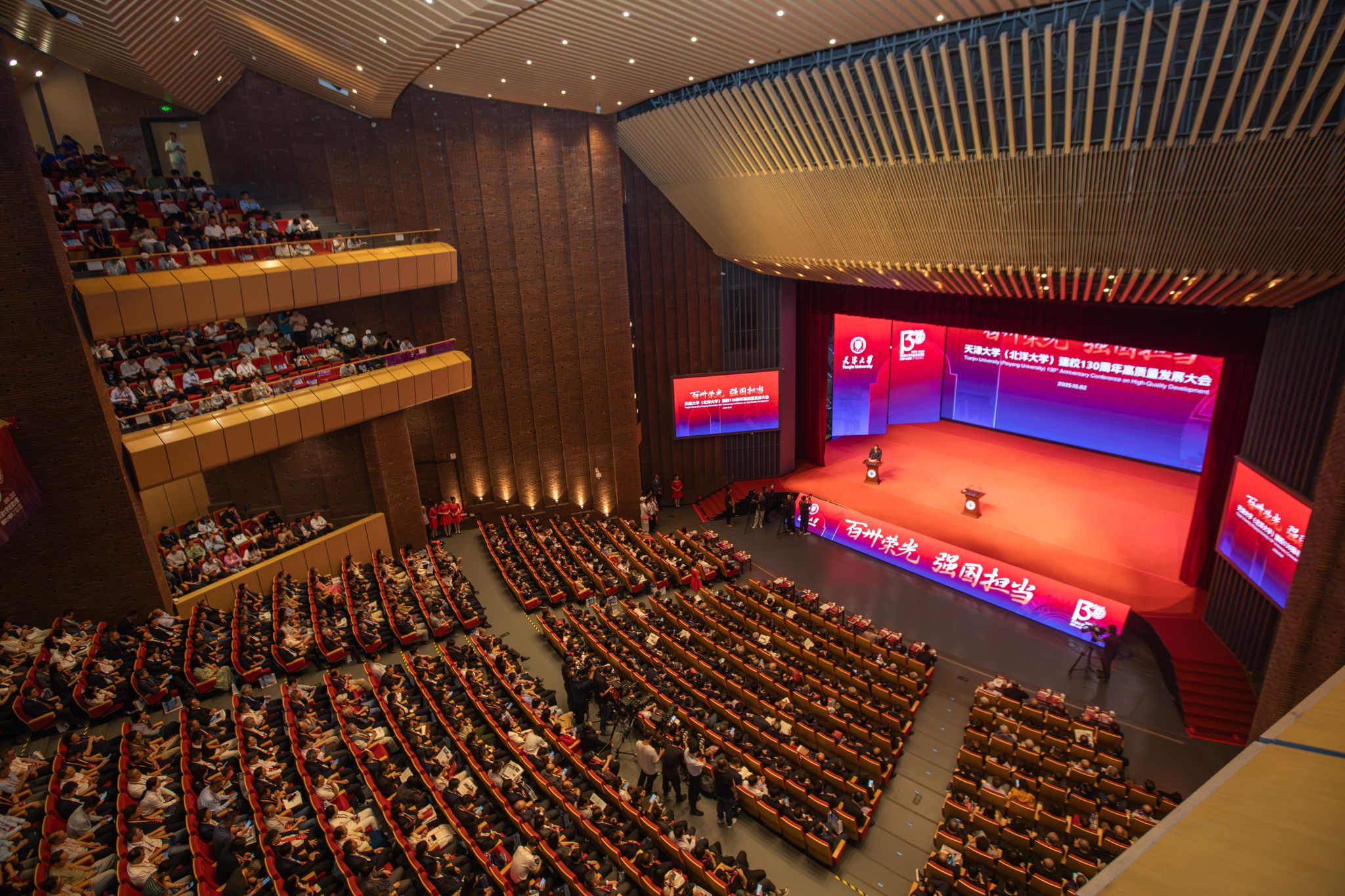 叠翠流金,彩叶铺锦,十月是天津最美的季节。在国庆的热烈与振奋中,中国第一所现代大学——迎来了百卅华诞。2025 年 10 月 2 日,天津大学(北洋大学)建校 130 周年高质量发展大会在北洋园校区求实会堂隆重举行。