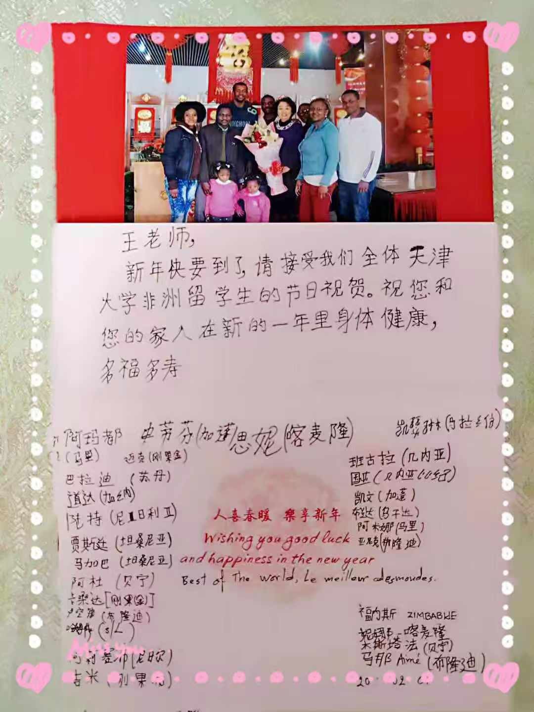 退休多年,我依然珍藏着留学生送给我的贺卡书信和相册,每当翻看那一张张贺卡和相册,倍感方寸之间,情真意切,看到他(她)们那熟悉的笑脸,仿佛又回到当年和留学生在一起的宝贵时光,重拾起往昔的回忆……