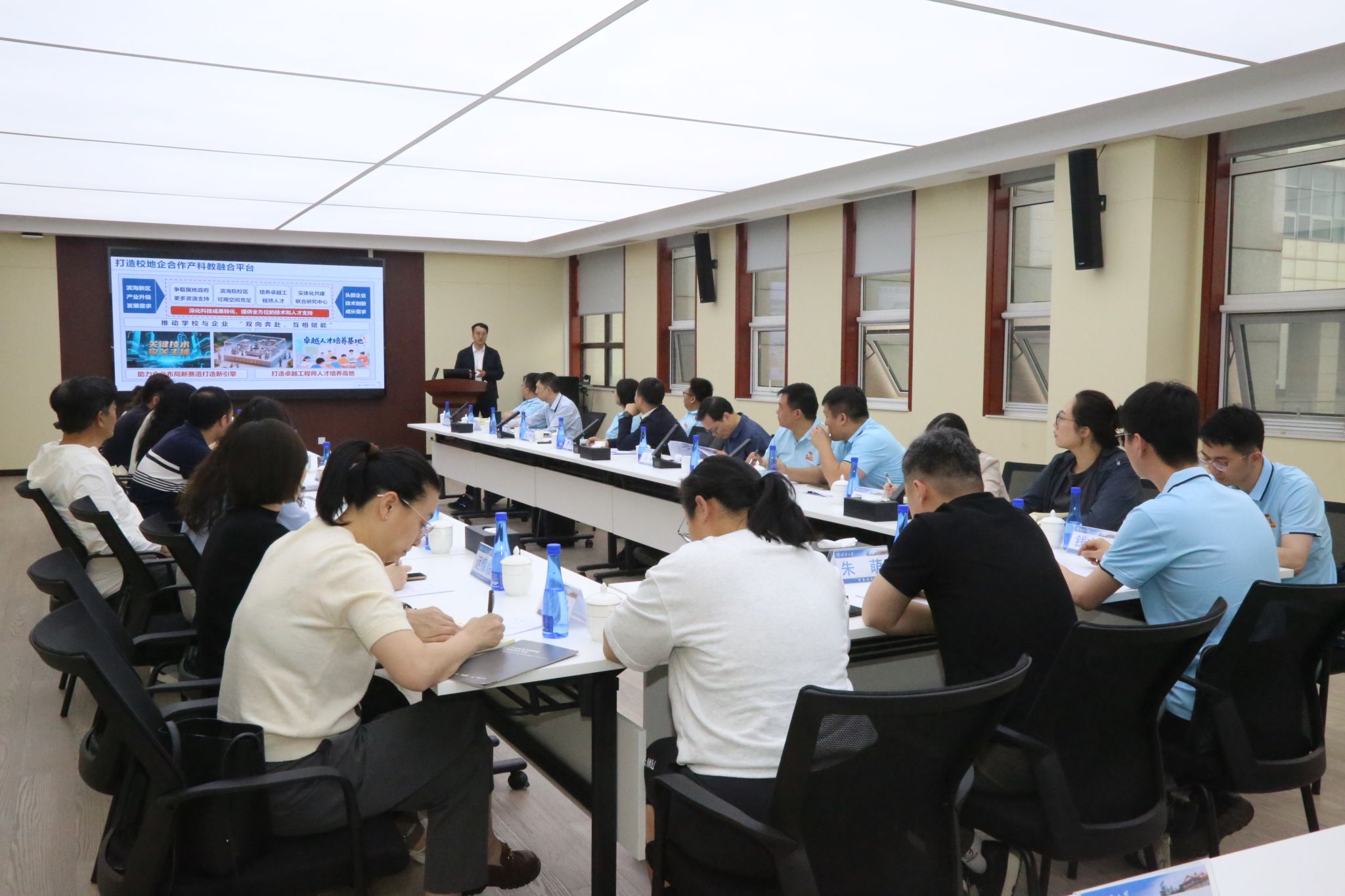 本站讯 为贯彻落实学校主要领导与滨海新区区委主要领导会谈精神和指示要求,加快推进人才培养、科技创新、成果转化、产教融合,5月22日下午,天津大学滨海工业研究院(以下简称“滨海院”)与滨海新区区委组织部人才两室开展联学共建活动。滨海新区区委组织部、人社局,保税区党委组织部、科技局、人社局相关负责同志,天津大学滨海院领导班子、滨海院公司全体教职员工参加活动。