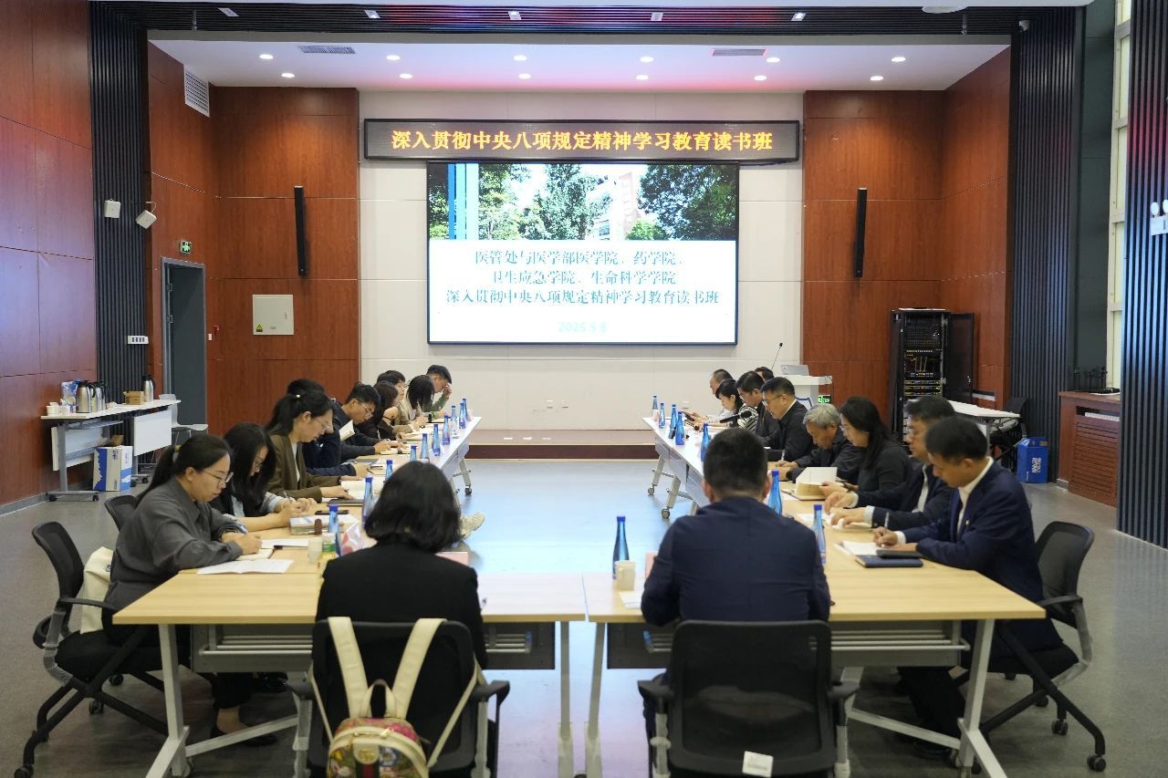 明东在总结讲话中指出,要扎实开展深入贯彻中央八项规定精神学习教育,医管处和医学部各学院领导班子要做好表率,带头学、深入学,推动党的创新理论入脑入心、见行见效。他指出,一场场理论学习是一次次精神洗礼,要真正做到内化于心、外化于行,将铁规矩、硬杠杠转化为行动自觉,为营造风清气正的政治生态和凝聚干事创业合力夯实思想根基。要坚持严的基调与实的作风相统一,深刻认识自我革命是党永葆生机活力的关键所在,是破解“独有难题”的根本路径。要坚持同心同向,心往一处想、劲往一处使,用好座谈会、一线调研等方法,及时回应师生关切,厉行节约、统筹资源,以医科建设的实际成效迎接我校建校130周年,奋力迈向世界一流大学前列的新征程。