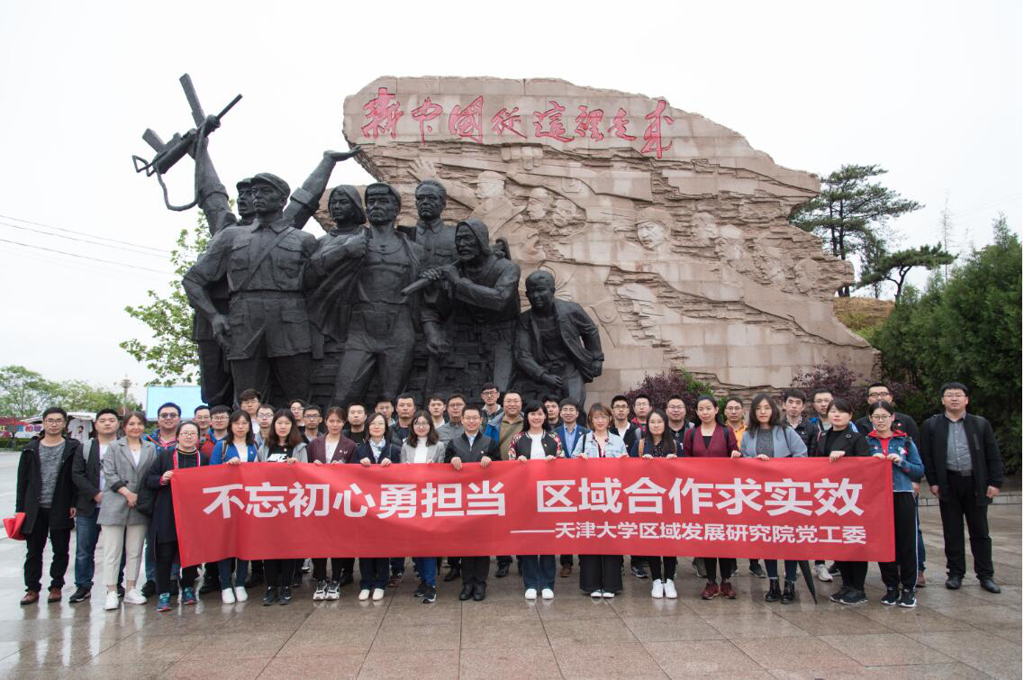 本站讯(通讯员 张佳 摄影 韩宇)4月27日至28日,区域发展研究院党工委组织机关支部、滨海院教工支部、武清院教工支部、武清院2017级研究生支部、青岛院教工支部、青岛院2017级研究生支部共计40余名党员和积极分子赴河北省西柏坡开展“不忘初心勇担当,区域合作求实效”主题党日实践活动。本次活动举办时值七届二中全会召开和两个“务必”提出70周年之际,旨在教育引导广大党员坚定理想信念,走好新时代“赶考”路。