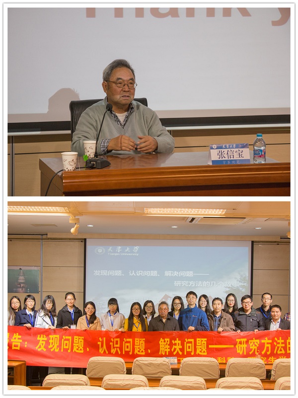 方法,提升学术研究能力和水平,天津大学党委学工部、表层地球系统科学研究院、研究生学术文化促进会在卫津路校区联合举办“发现问题、认识问题、解决问题——研究方法的几个故事”报告会。中科院水利部成都山地灾害与环境研究所张信宝教授担任主讲嘉宾,表层地球系统科学研究院副院长李思亮,以及来自各学院的研究生代表参加了报告会。