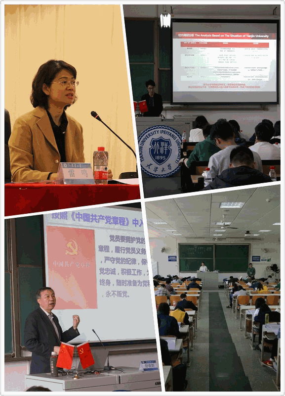 随后的理论培训环节,校党委常务副书记、副校长舒歌群,校党委副书记雷鸣,全国教育系统关心下一代工作先进个人、天津市延安精神研究会副会长王辅成,组织部高立章老师分别为学员授课。