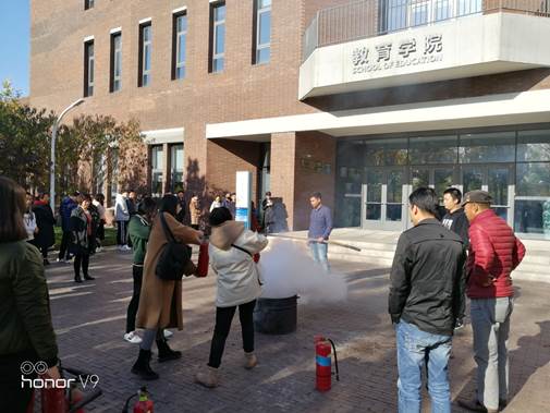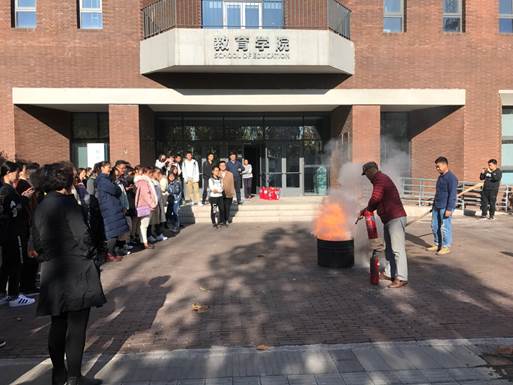 学院特地邀请保卫处消防科的弓保津老师为同学讲解火灾的预防、逃生自救技能和灭火器等消防器材使用的消防知识,使同学们进一步了解一旦火灾发生应该做什么、如何报警、如何正确扑救、如何自救和逃生等技能。在消防科老师的指导下,同学们观摩并学习使用了灭火器,此次消防疏散演习圆满结束。