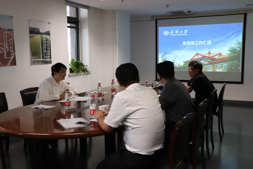 本站讯(通讯员 于月倩 张建斌)9月19日下午,巩金龙副校长到北洋园校区体育馆调研学校体育和场馆工作。体育部党总支书记韩文俊、体育部主任吴金克、场馆中心主任王鑫参加调研座谈。