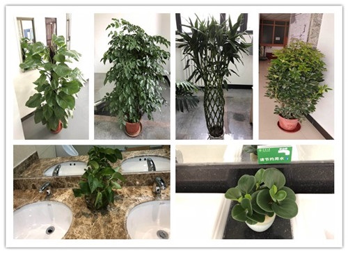 室内花卉美化方面,为了给师生的办公、学习区域增添一抹绿色,物业在第23教学楼、第26教学楼、第2教学楼、第15教学楼、信网中心等楼宇的卫生间洗手台摆放水培绿萝,在会议楼卫生间洗手台摆放碧玉等观赏盆景,在老年活动中心大厅摆放绿宝石和鹅掌木,第2教学楼大厅摆放绿宝石,第23教学楼大厅摆放幸福树,信网中心摆放绿植,第26教学楼D、E区摆放了耐热、喜通风的绿植,如非洲茉莉、铁树,增添生机。