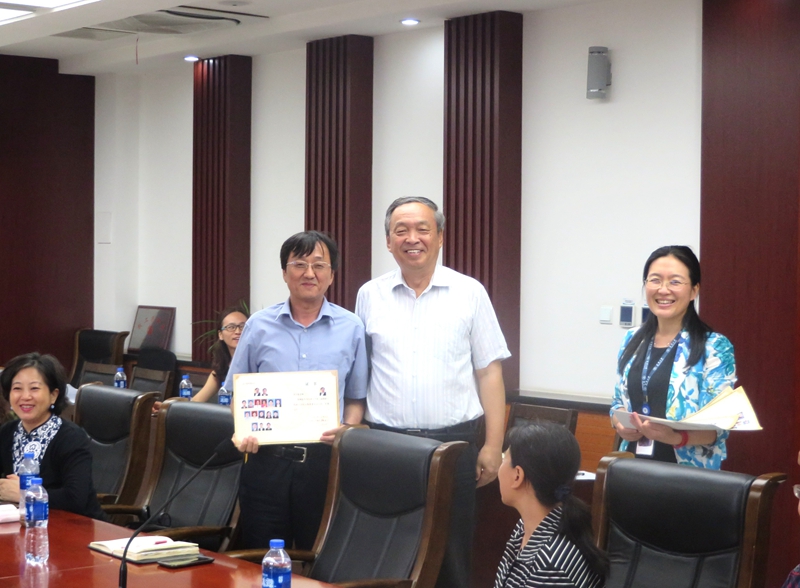学校第八届教代会民主管理委员会和集体生活福利委员会的委员们首次履职参加座谈会,汪曣给委员们逐一颁发证书。